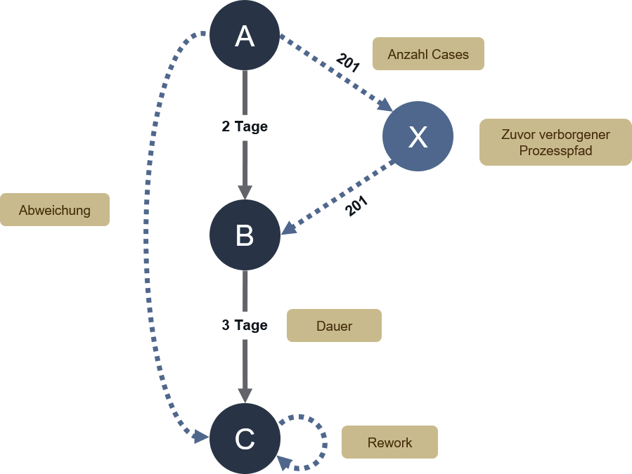 Mit gängigen Softwaretools können Prozessineffizienzen und -fehler bislang nur unzureichend analysiert werden. Es fehlt die erforderliche Transparenz und das Wissen über Prozessabläufe und -varianten, um Fehlerursachen zu identifizieren und Optimierungspotenziale aus bestehenden Prozessdaten abzuleiten.
